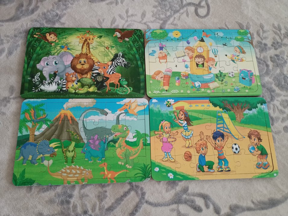 4 adet ahşap yapboz fiyatıdır. Sadece bir tane parçasının ucu kopmuştur resmini ekledim.