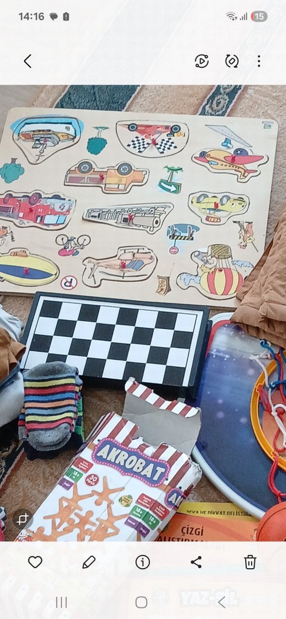 Çocuklar için çeşitli araç şekillerine sahip renkli ahşap yapboz. Parçalar açık renkli tahta üzerine yerleştirilebilir.evde fazlalıkları hayrına biri faydalansın diye satıyorum satranç ve ahşap çöp adamlarda var