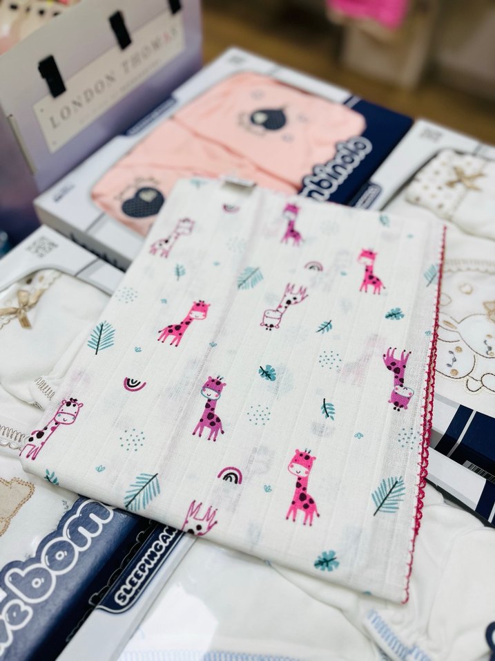 Yumuşak sentetik kumaştan, neşeli zürafa baskılı renkli çocuk battaniyesi. Çocuk odalarına eğlenceli bir dokunuş katar. Müslin örtü