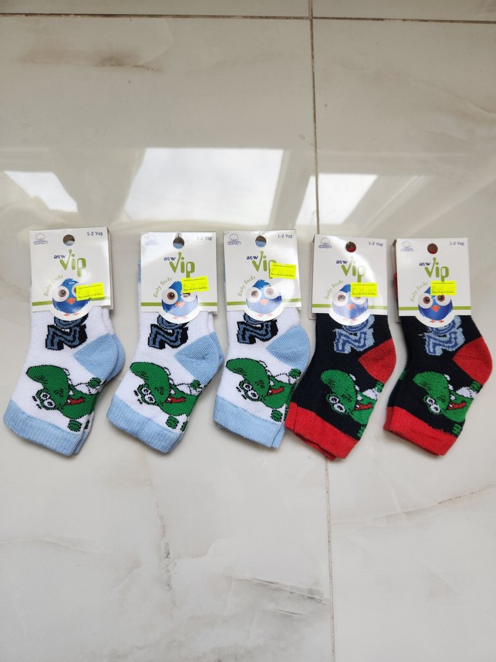 Çocuklar için çok renkli, baskılı desenlere sahip çoraplar. Mavi ve kırmızı detaylar bulunur. ERKEK BEBEK ÇORAP ADET FİYATI 13 TL DİR İSTEDİĞİNİZ ADETTE İLAN AÇTIRABİLİRSİNİZ. 1/2 yaştır