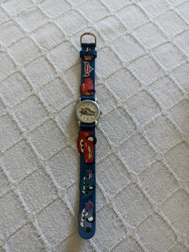 Çocuklar için baskılı desenli renkli kayışlı, tokalı ve yumuşak dokulu bir saattir. Şimşek McQueen