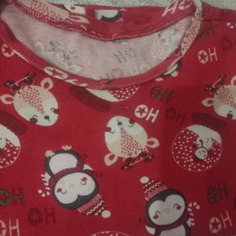 Renkli baskılı, penguen ve eğlenceli desenlere sahip kırmızı çocuk yumuşak kumaştan üretilmiştir.