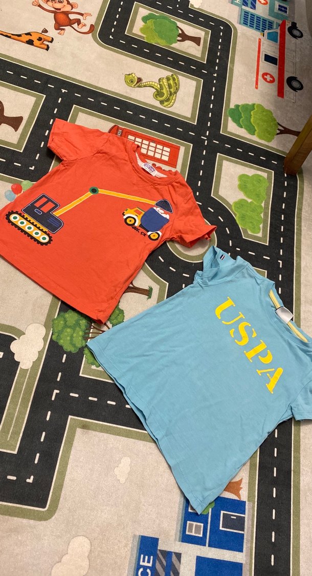 Yumuşak tekstil kumaştan, bisiklet yaka ve renkli baskılı desenlere sahip, çocuklar için kısa kollu, dar kesim tişörtler.