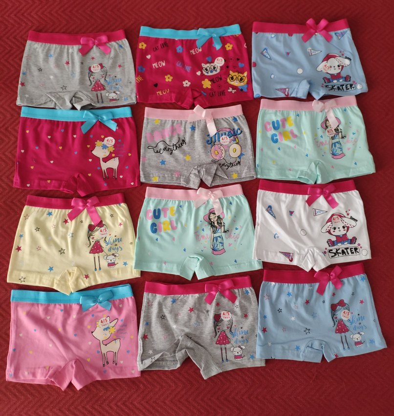 5 ADET FİYATIDIR ‼️ Yumuşak kumaştan yapılmış, farklı sevimli desenlere ve belinde küçük fiyonk detaylarına sahip renkli kız çocuk boxerları.