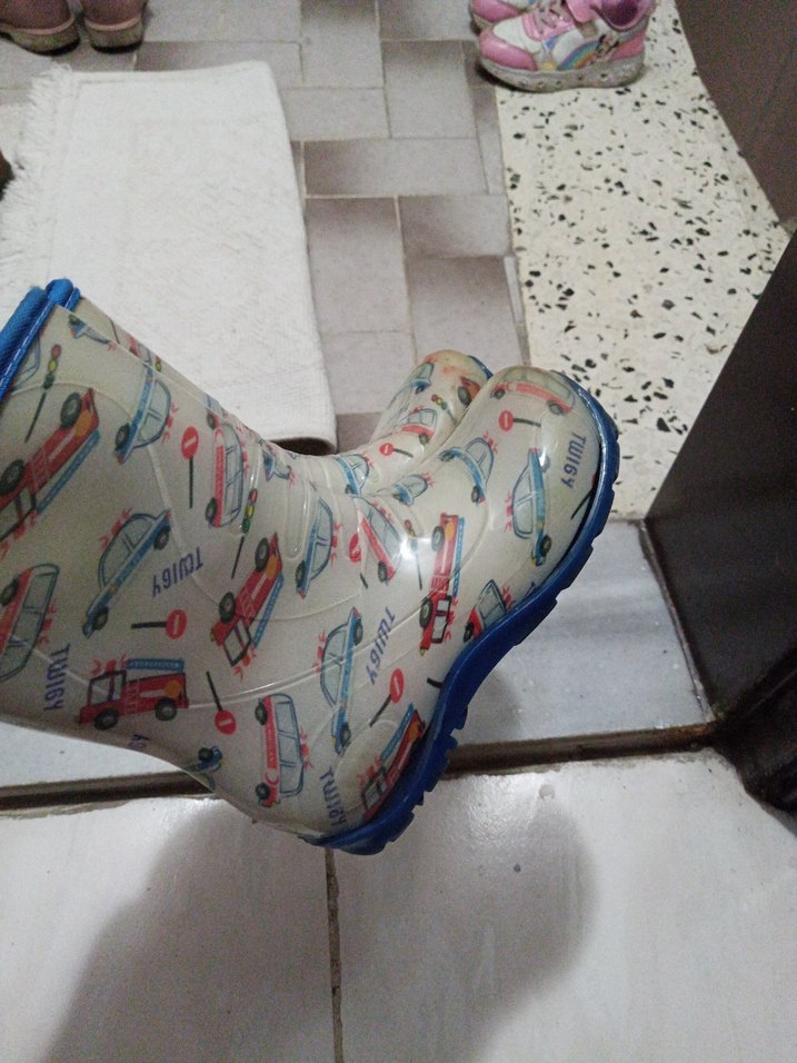 Çocuklar için lastik malzemeden, renkli itfaiye aracı baskılı ve tokalı çizme. Sokak stili için uygun.