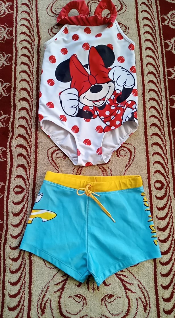 H&M DİSNEY kız çocuğu mayosu 4 5 yaşına olur mickey mouse özel serisi iç etiketi kesik olduğu için bedeni okunmuyor LC Waikiki erkek çocuk Deniz şortu 6 7 yaş Temiz ürünler ikili fiyat