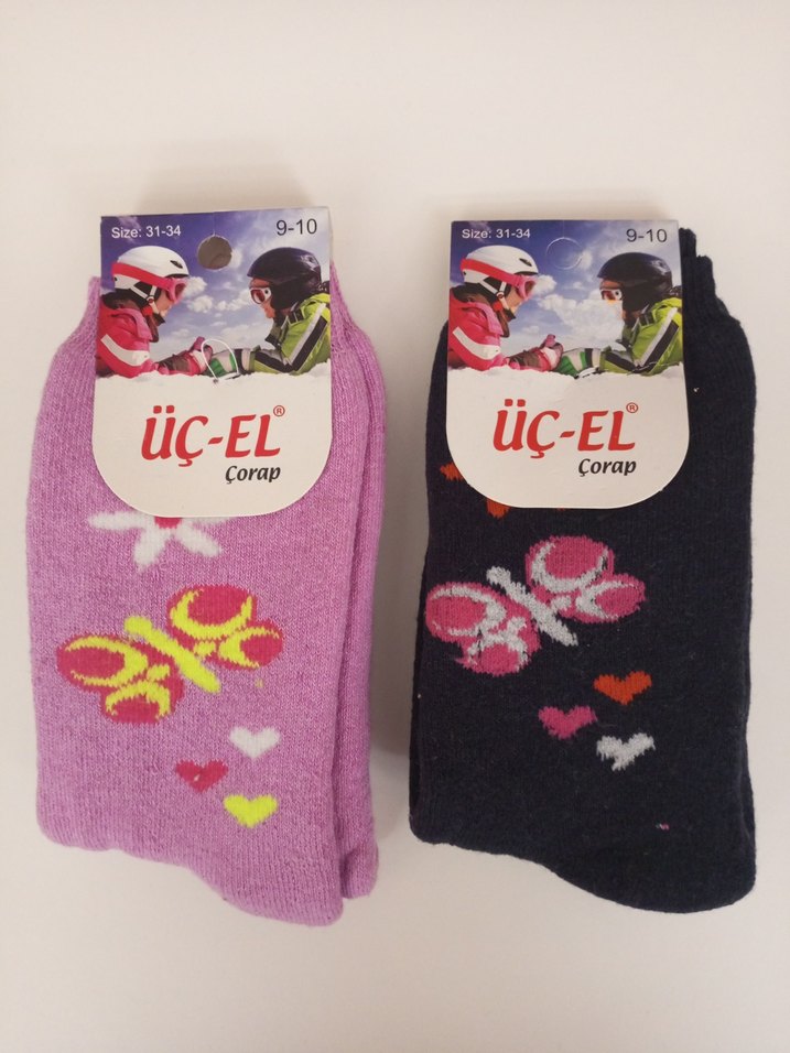 Yumuşak ve sıcak kumaştan yapılmış, 9-10 numara çocuklar için renkli baskılı havlu çoraplar. 2'adet fiyatı