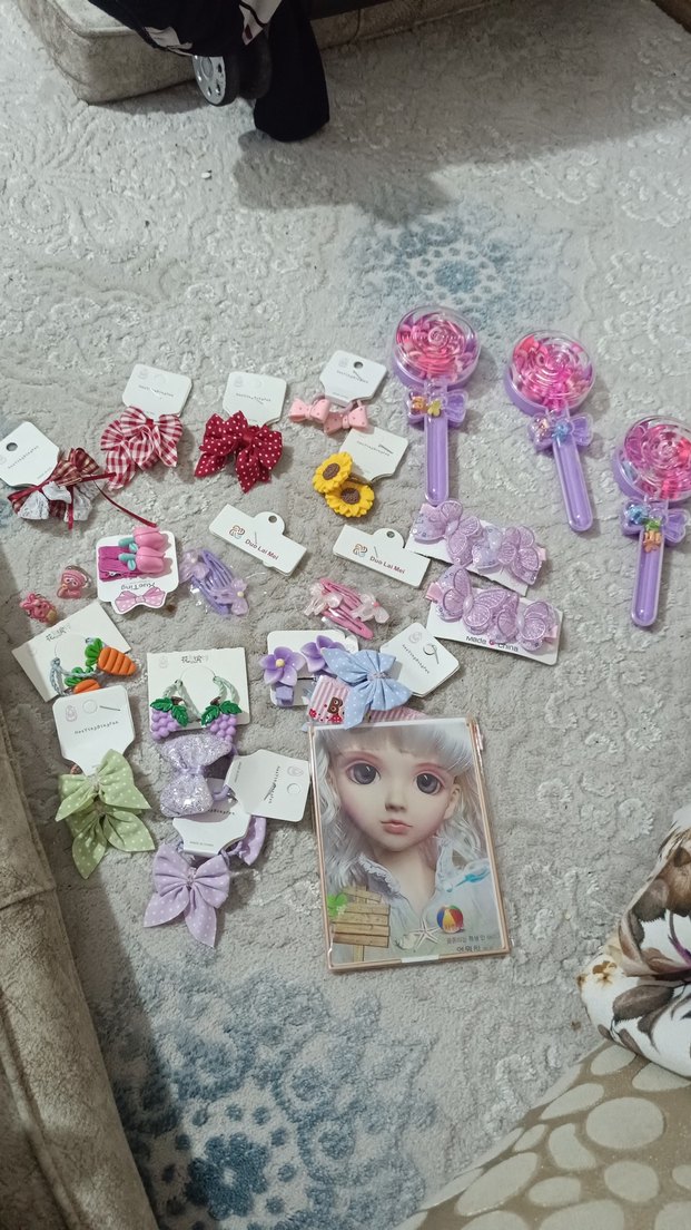 Pastel renklerde, çok renkli baskılı bohem desenli ve kurdele detaylı çocuk saç tokaları ve bantları.