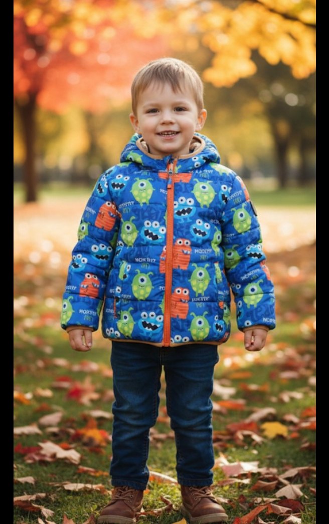 Çocuklar için yumuşak sentetik kumaştan yapılmış, renkli canavar desenleri ve 'monster PARTY' yazısı bulunan eğlenceli bir mont. fotoğrafta görüldüğü gibidir .uygun fiyata koyuyorum