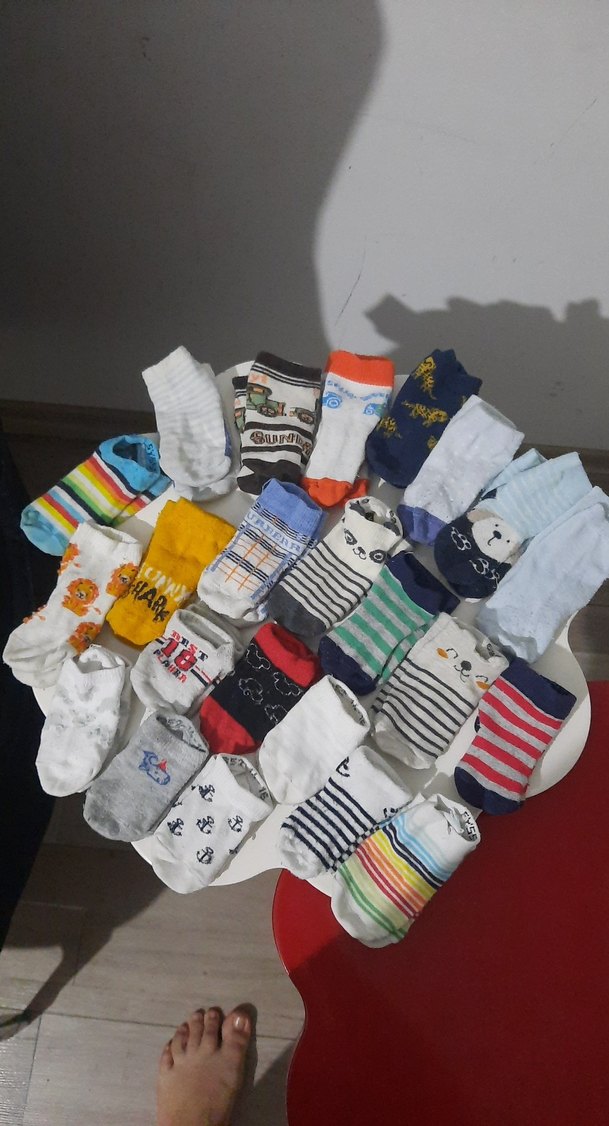 Çeşitli desenler ve çizgilerle çok renkli çocuk çorapları seti. Hiçbirinde yırtık sökük patlak deformesi yoktur hepsi Sayılı giyildi içinde giyilmeyende var yenidogandan 1 yasa kadar içinde var hepsinin fiyatıdır Toplam 23 çifttir