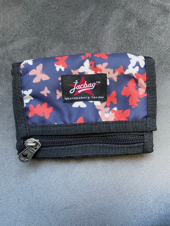 Renkli kelebek desenli, fermuarlı bölmesi olan çocuk cüzdanı, trend sokak tarzına uygun.