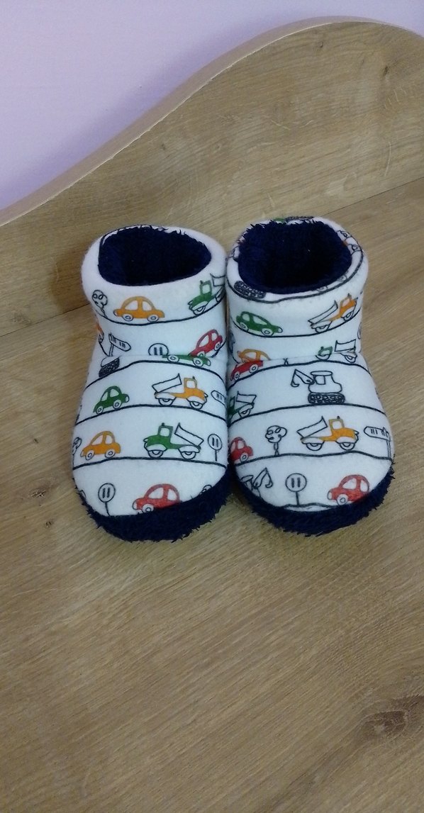 Renkli araba desenli çocuk terliği, sıcak iç yüzey ve kolay kullanımKauçuk taban dayanıklı ve kaymazdır.