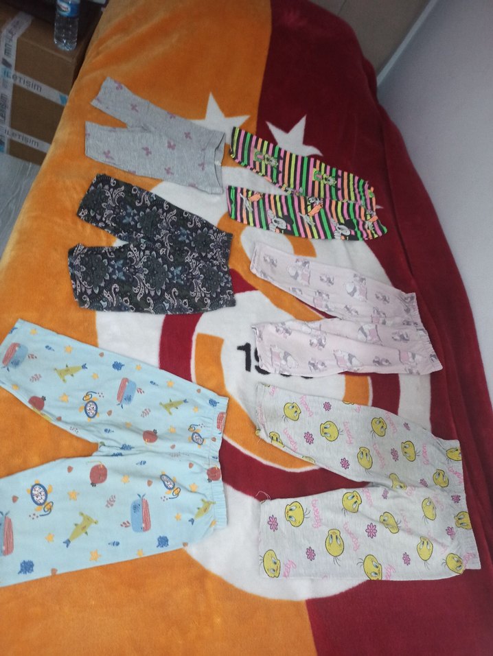 Çocuklar için çeşitli desenlerde, yumuşak penye kumaştan yapılmış renkli kısa tayt. Uyku ve oyun için rahat. Park da etek altına giydirdim popo kısmı lekeli uygun fiyat 2/4 yaş âdet fiyatı