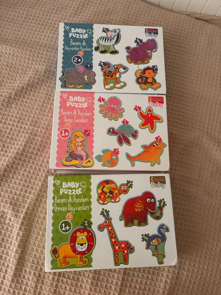 1 yaş ve üzeri çocuklar için renkli hayvan temalı puzzle seti. Canlı ve kolay tutulan parçalarla motor becerileri destekler.
