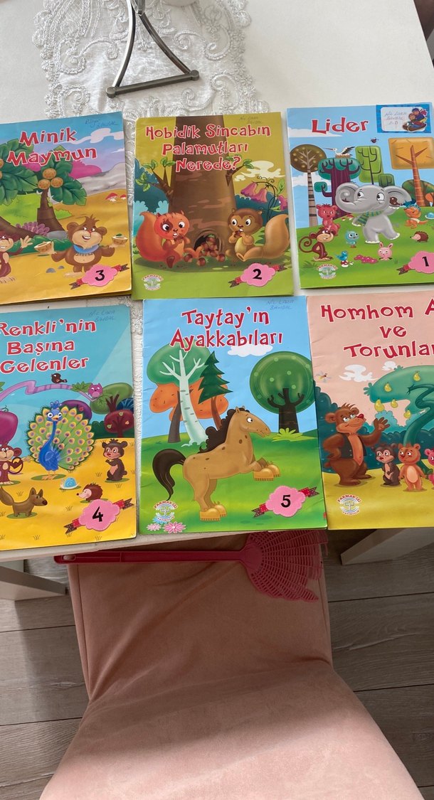 Hayvanların yer aldığı, renkli resimli ve çocuklar için uygun metinli hikaye kitapları seti.