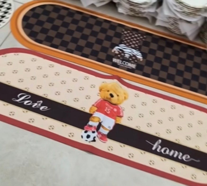 Çeşitli figürlerle süslenmiş renkli paspaslar. Lavabolar , çocuk odaları için neşeli bir dokunuş katar. #paspas #çocukhalısı #çocukodası