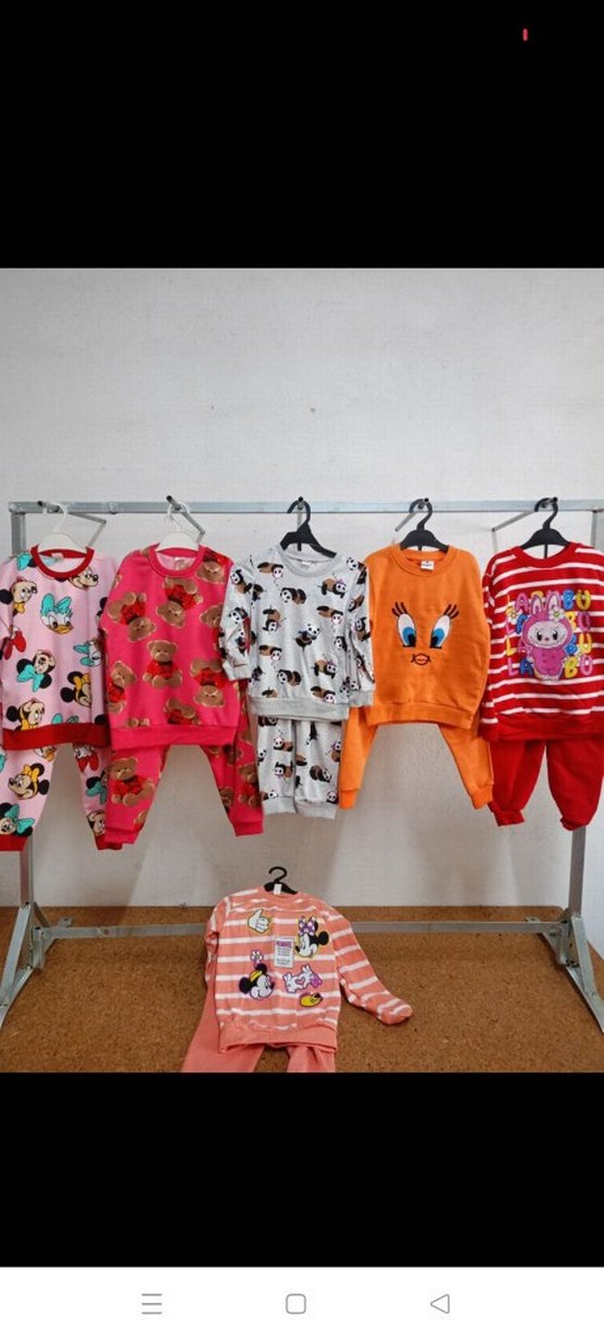 Çocuklar için çeşitli çizgi film karakterleriyle renkli pijama takımları, yumuşak kumaştan üretilmiştir. Canlı tasarımlar mevcuttur.