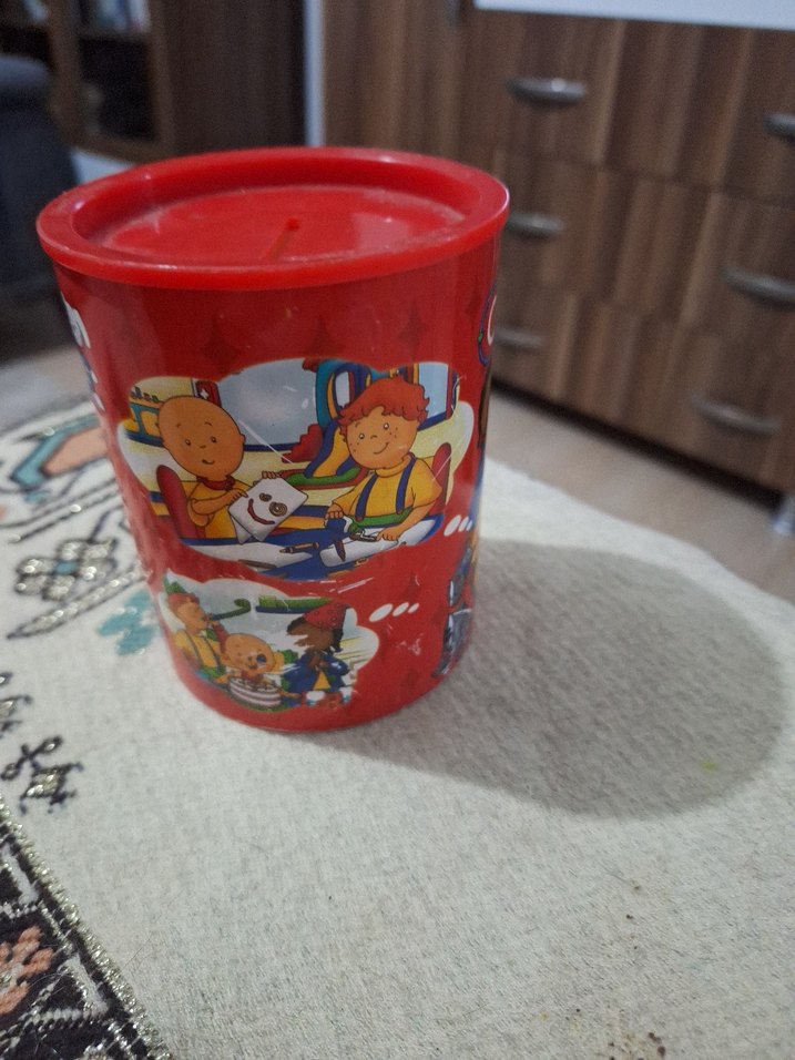 Çocuklar için renkli kırmızı caillou karakterli líansli kumbara kullanilmadi