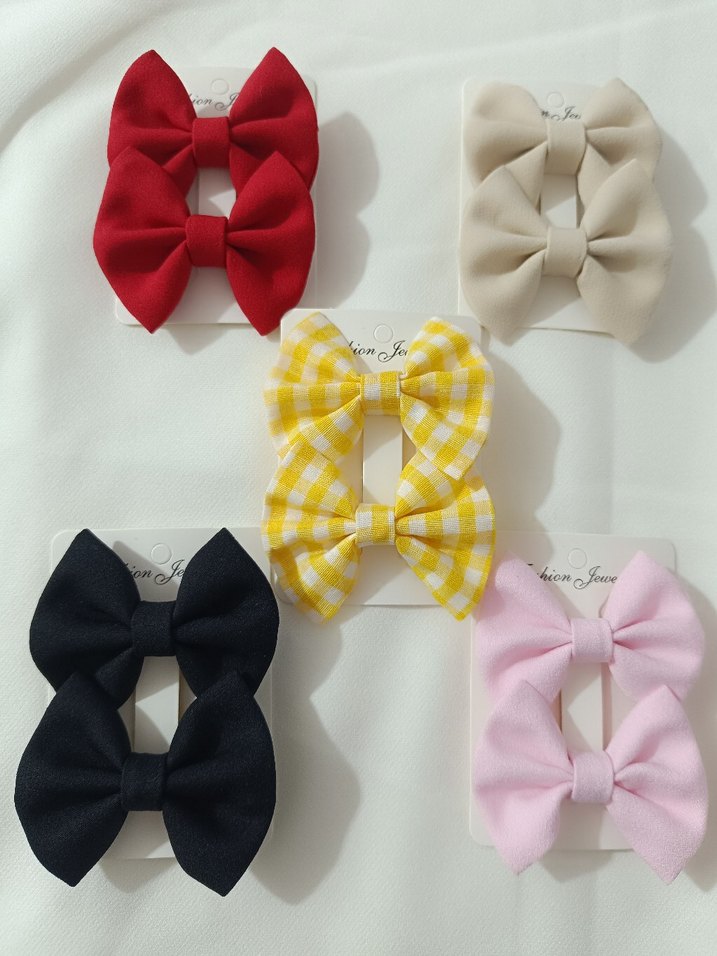 Çocuklar için kırmızı, bej, sarı, siyah ve pembe renklerde renkli fiyonk tokalar 2 adet toka fiyatidir