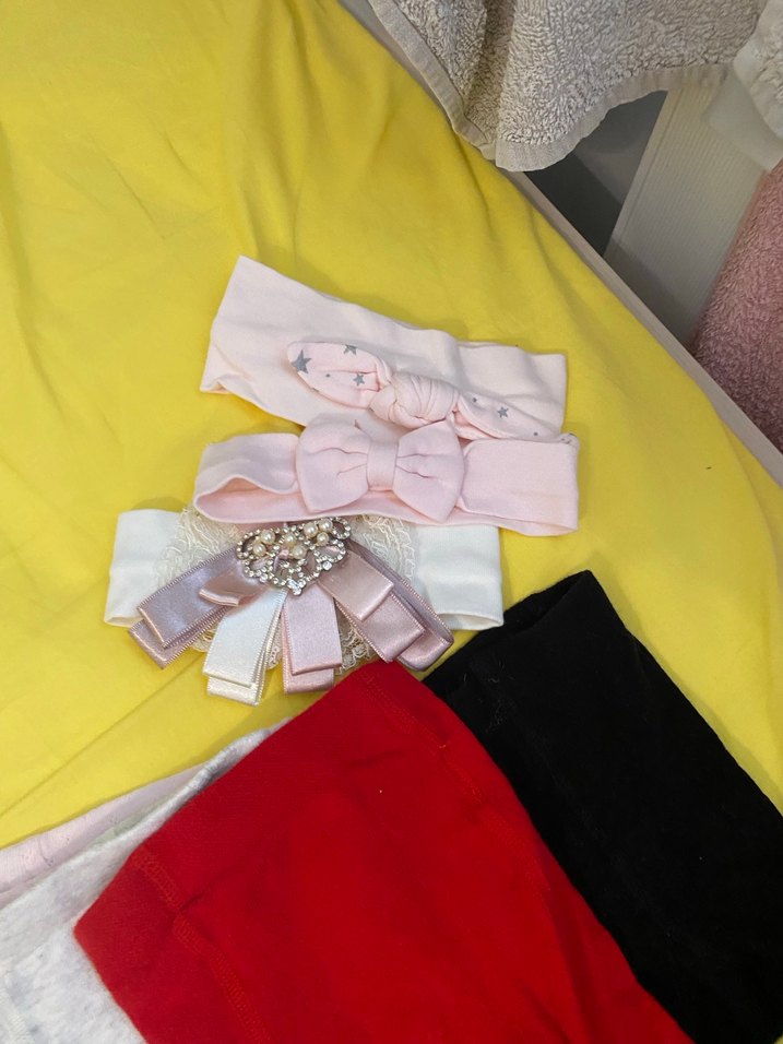 Çocuklar için yumuşak kumaş ve dekoratif kurdelelerle renkli saç bantları, trend sokak modasına uygun.
