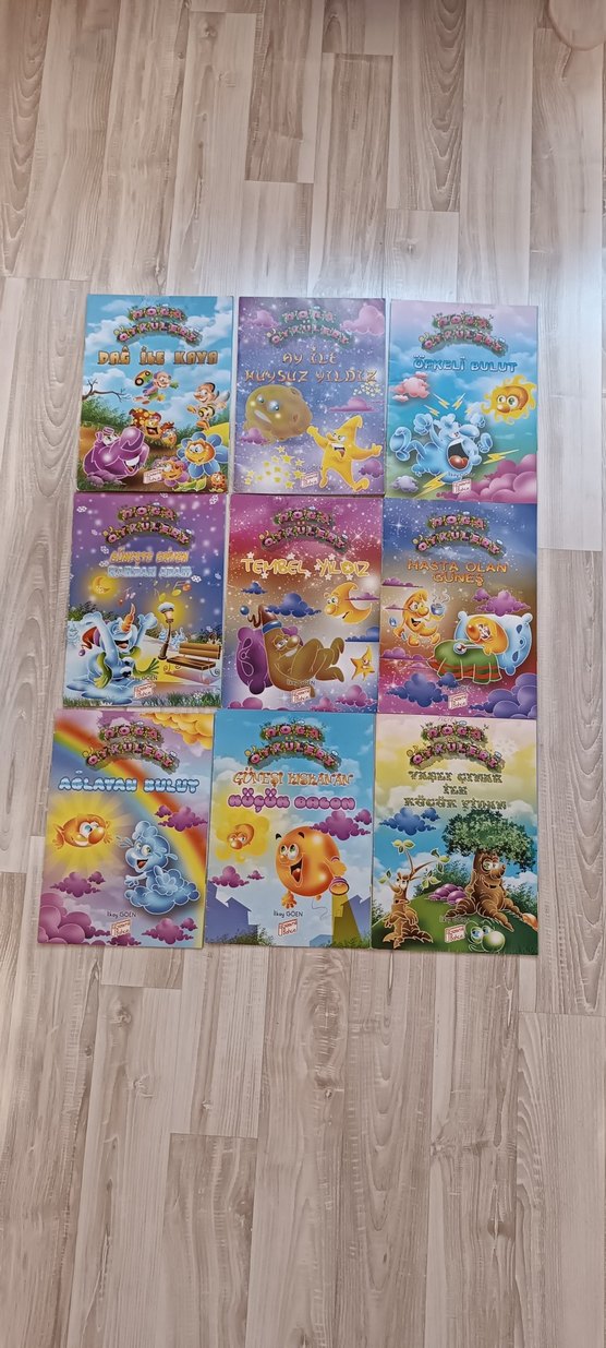 9 renkli ve eğlenceli çocuk kitabı seti, canlı çizimlerle dolu ve çocuklar için uygundur. 9 adet kitap fiyata dahildir