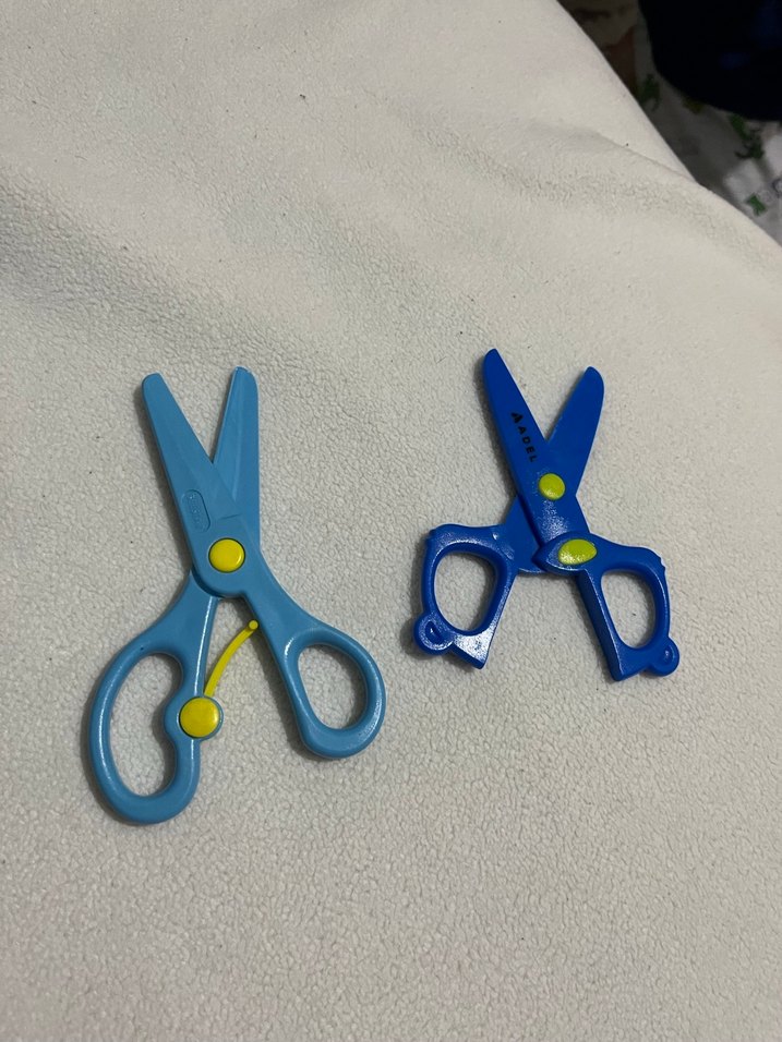 Çocuklar için güvenli, yuvarlak uçlu, iki renkli mavi makas seti. ✂️ anaokulunda kullanım içindir tekli satın alınabilir