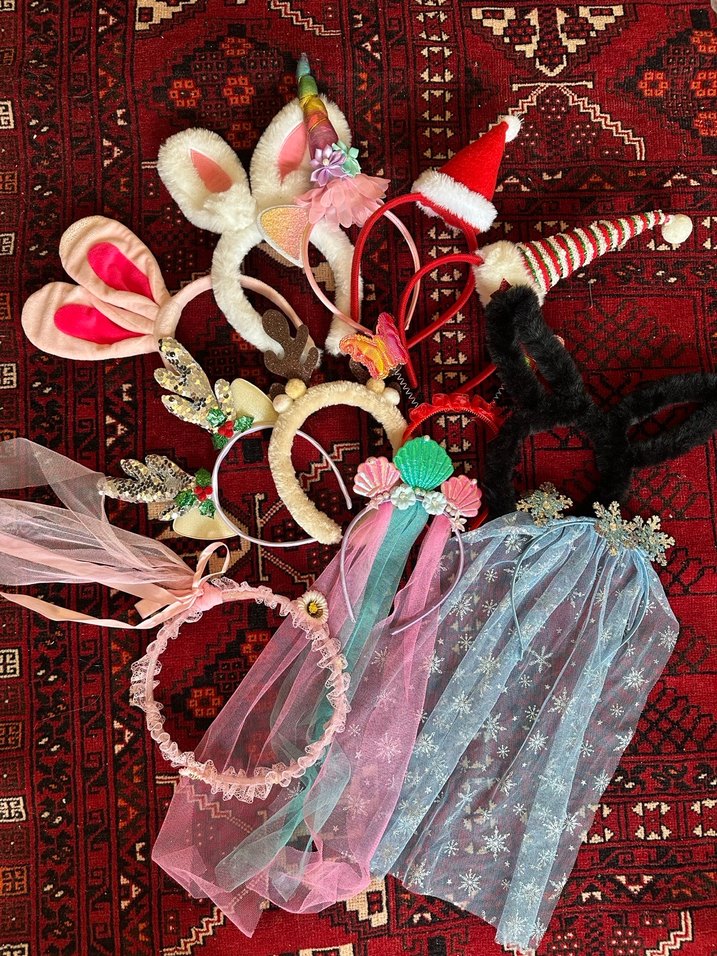 Nakışlı desenler ve dantel detaylı, bohem tarzda renkli çocuk saç bantları ve tokalar. Retro ve hippie havası katan eğlenceli aksesuarlar. 12 Adet, Toplu fiyat.