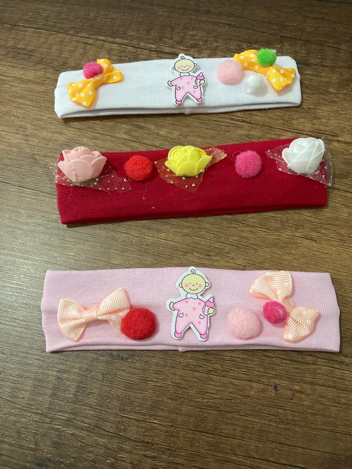 Nakışlı desenler, kurdeleler ve yumuşak ponponlar içeren renkli çocuk saç bantları, bohem tarzda eğlenceli tasarımlar sunar3 adettir