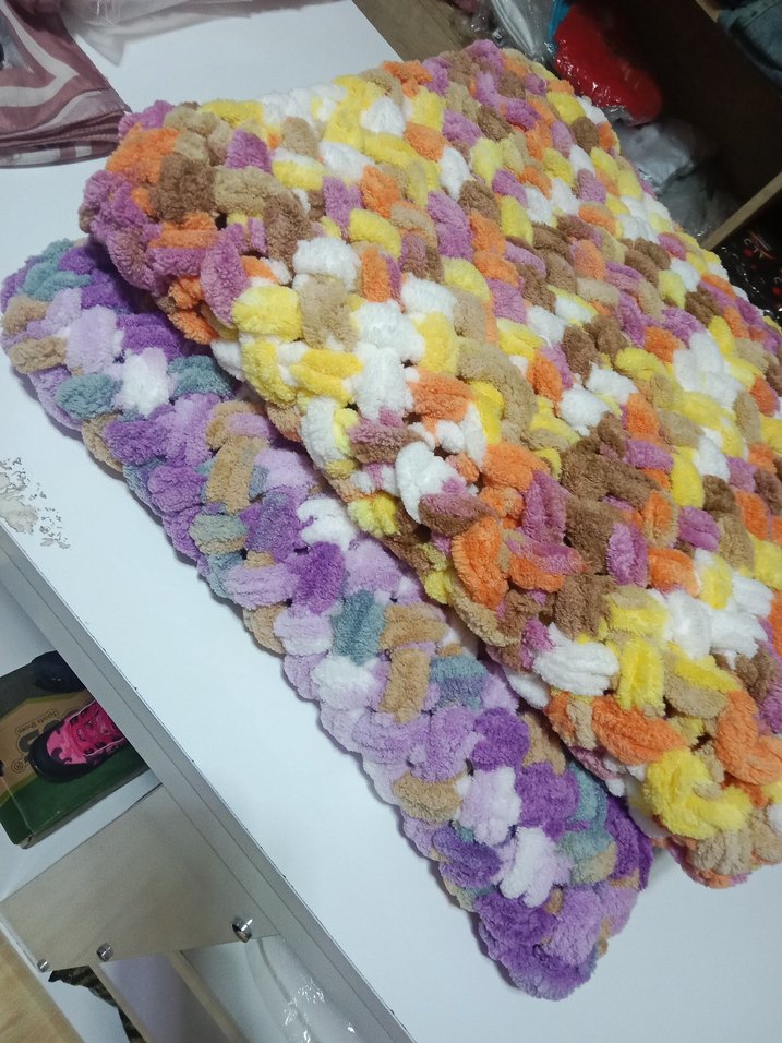 Renkli örgü çocuk battaniyesi, canlı tie-dye desenli ve yumuşak dokulu, çocuklar için sıcak tutar. fuffden