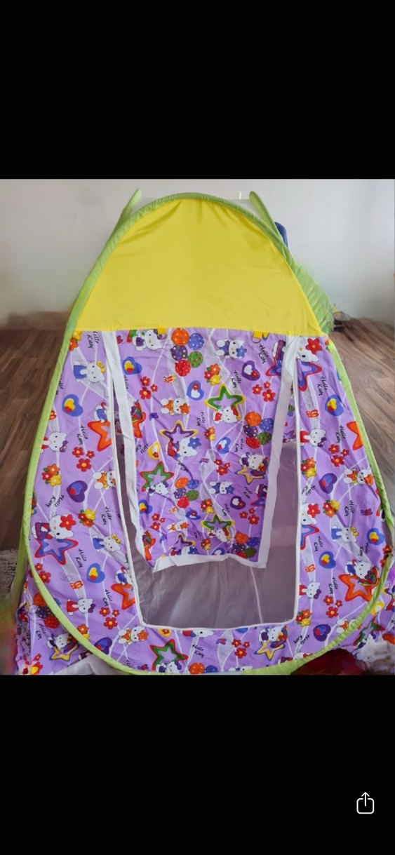 Renkli sentetik kumaştan yapılmış, bağlama desenli pencereli sineklikli çocuk çadırı, çocuklar için eğlenceli ve rahat bir alan sunar.Taşıma çantası mevcuttur.Herhagi defosu yoktur.ölçü:en boy uznluk hepsi 120-120 dir