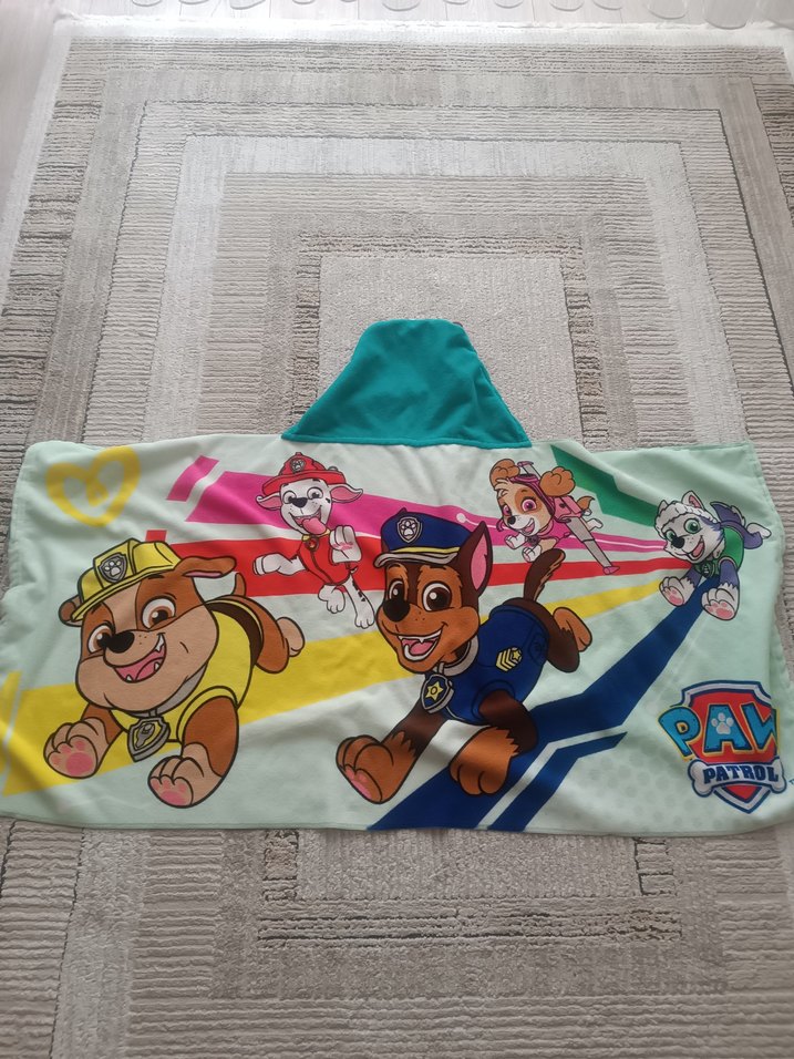 Yumuşak yapılmış, Paw Patrol baskılı renkli çocuk havlusu, çok az kullanıldı, marka temsilidir