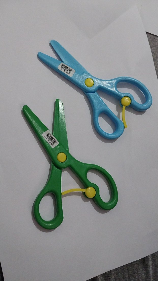 İki renkli plastik makas, yuvarlak uçlu ve sarı güvenlik kilidi ile okul etkinlikleri için uygundur. Ergonomik saplara sahiptir. ✂️
