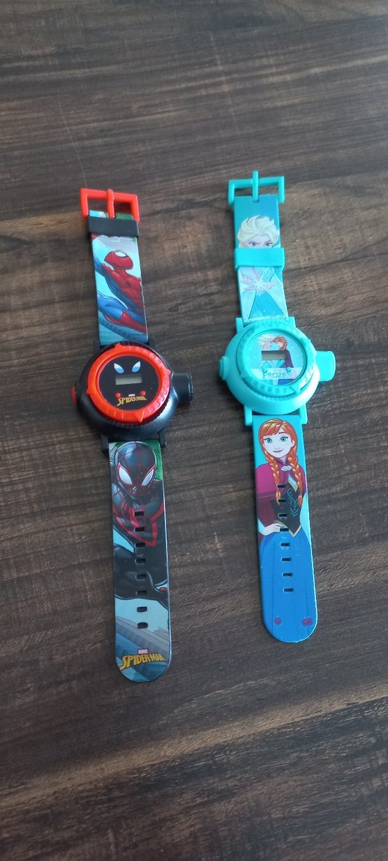 Ayarlanabilir kayışlı, Spiderman ve Frozen temalı renkli çocuk saatleri.