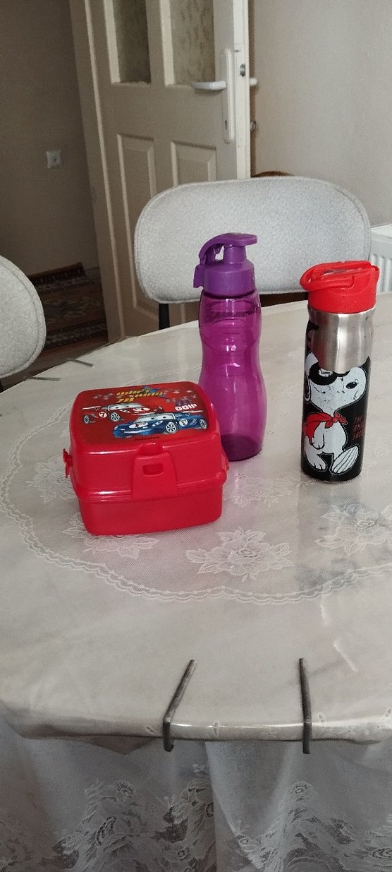 Çocuklar için renkli termos ve beslenme seti