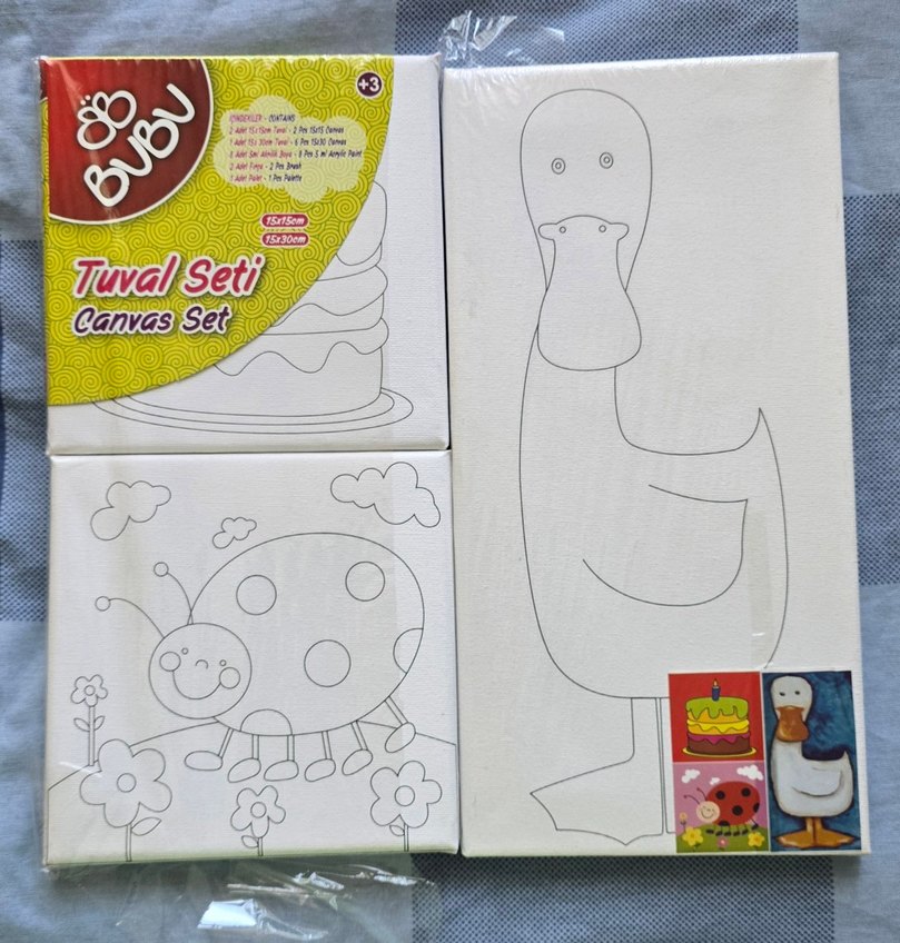 Çocuklar İçin Renkli Tuval Boyama Seti 3'lü set
