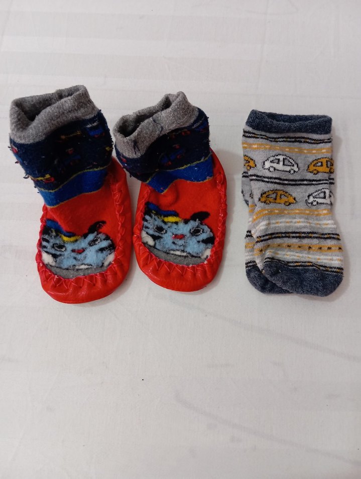 Erkek çocuklar için renkli ve desenli, araba ve hayvan figürlü çorap ve patik seti. Yumuşak ve rahat kumaştan üretilmiştir.