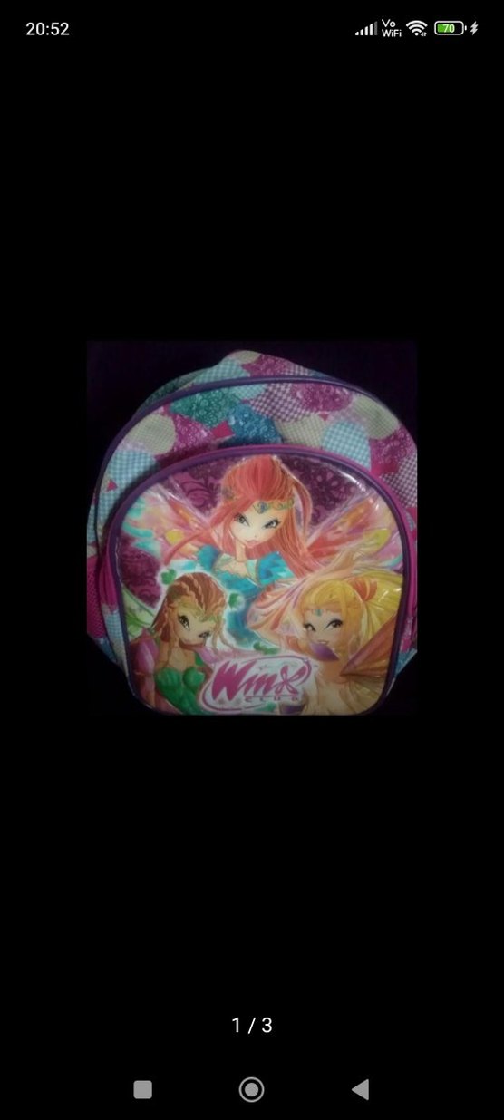 Ön cephesinde Winx karakterleri bulunan renkli çocuk okul çantası. Geniş ana bölme ve ayarlanabilir askılar içerir.
