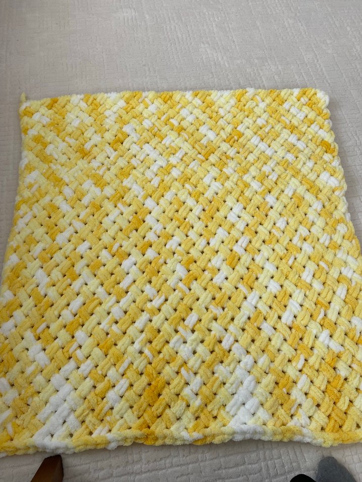 Çocuklar için sarı batik desenli örgü battaniye