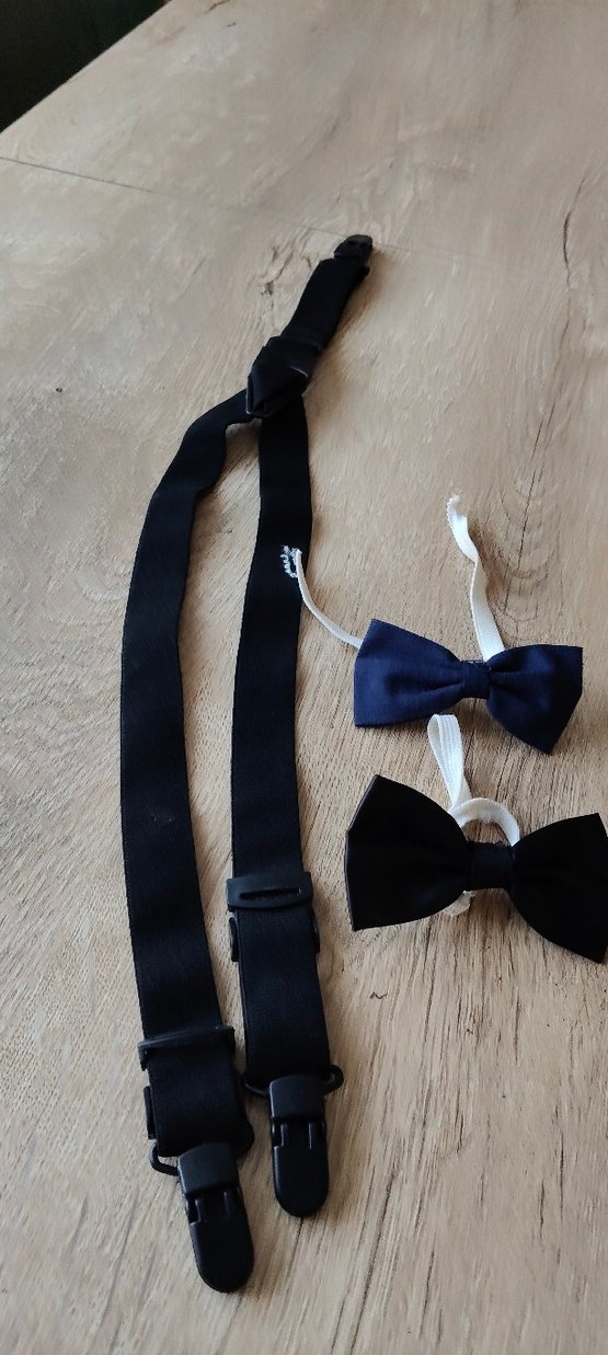 Çocuklar için ayarlanabilir bantlı siyah sentetik kumaş gotik tarzda papyonlar. ve pantolon askısı