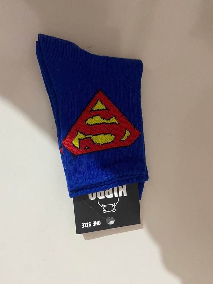 Mavi renkte çocuk çorapları, renkli baskılı süper kahraman deseniyle günlük kullanıma eğlenceli bir dokunuş katıyor. Tek beden ve rahat bir yapıya sahip.