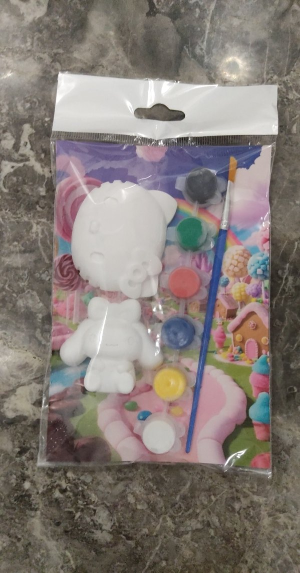 İki beyaz alçı figür, altı pastel renk boya ve bir fırça içeren boyama seti. Yaratıcı çalışmalar için uygundur. 2 adet taş figür , 6lı boya 1 adet fırça evde çocukların yetişkinlerin kaliteli vakit gecireceği hobi seti