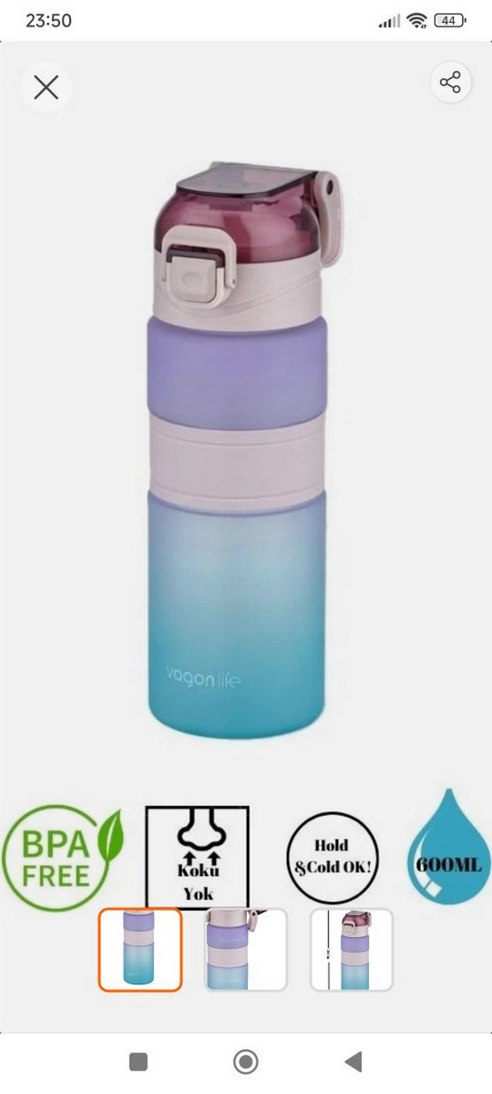 biri 600 ml biri 750/800 şu galiba büyük olan Mor ve mavi tonlarda, çocuklar için çok renkli termos şişeler. Güvenli açılır kapak ve tutması kolay tasarım içerir. markası vagonlife tritan sağlık açısından güvenilir.