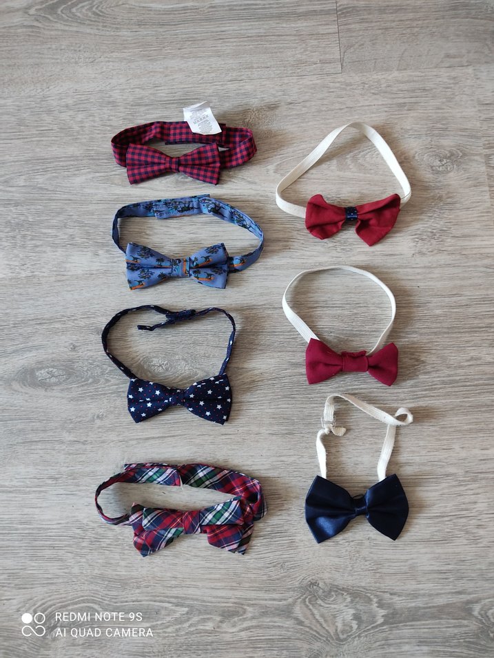 Çocuklar için vintage tarzda, koyu ve çok renkli desenlere sahip, tekstil malzemeden yapılmış papyon seti. Ayarlanabilir bantları vardır.