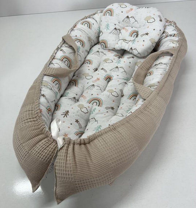 Yumuşak sentetik kumaştan yapılmış, gökkuşağı ve dağ desenli çocuk uyku yatağıdır, uyku konforu sağlar. hazırlanma ve kargo 15 gündür