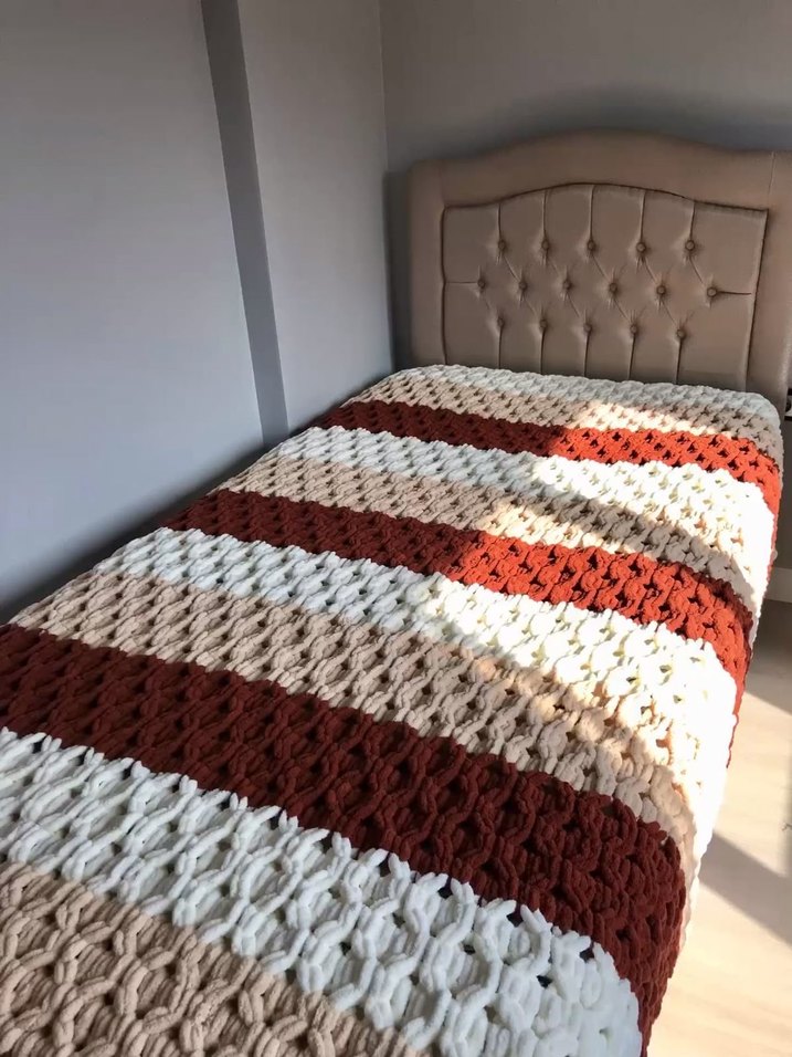 Çocuklar ve Yetişkinler için Örgü Çizgili Kahverengi Battaniye