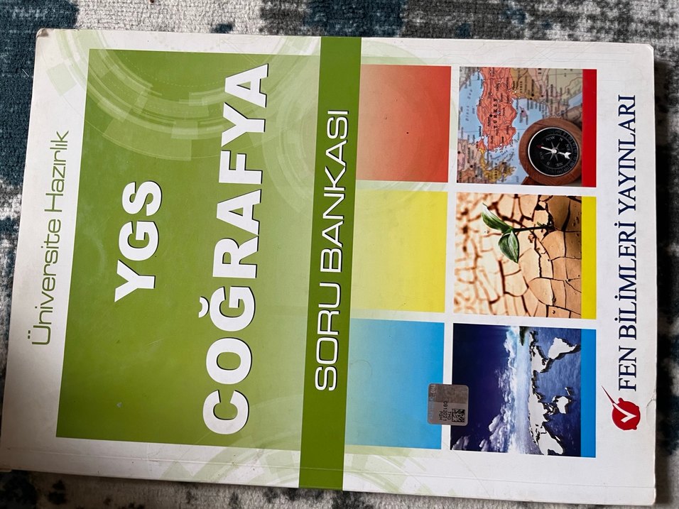 Coğrafya konularını içeren, renkli görsellerle desteklenen soru bankası kitabı.