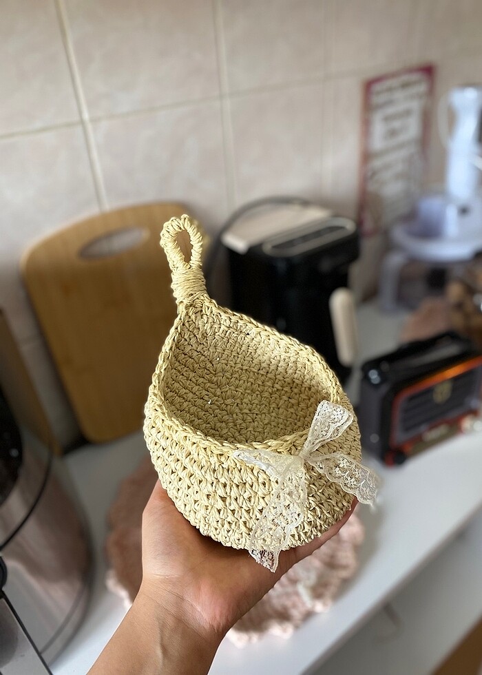 Çift Kağıt ip ile hazırlanmış dekor sepet