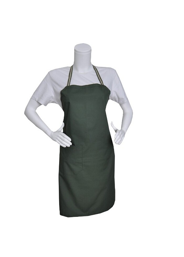 Yeşil renkli yumuşak kumaştan üretilmiş Cepli grogren askılı,üniseks çalışma önlüğü