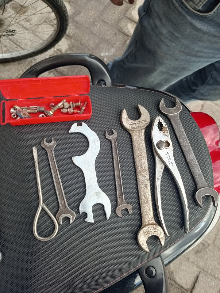 Çeşitli boyutlarda gri ve kırmızı anahtarlar ile pense içeren çok amaçlı el aletleri seti. ️