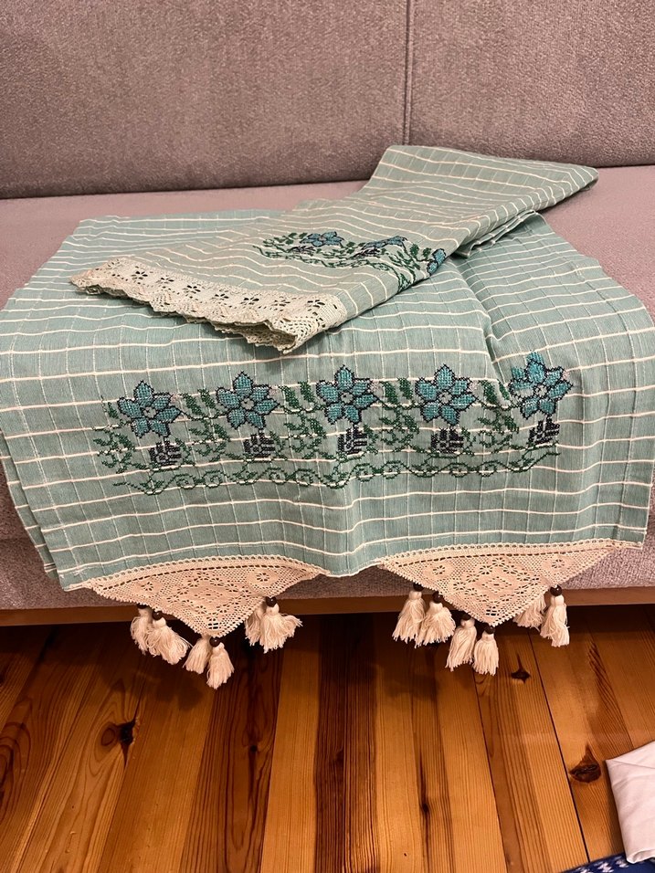 Çok amaçlı buzdolabı çamaşır makinası örtüsü bir tanesinde sararma mevcut el işi dantel oymalı